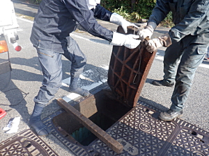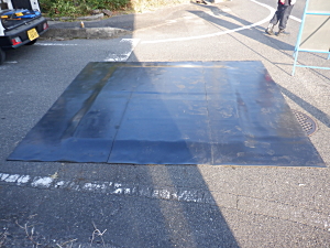 2025/11/21 汚水蓋の撤去と開口部の仮設を行いました。 かなり大きな開口となる為、敷鉄板を敷設し、その上にゴムマットを敷きました。 撤去した汚水蓋はショットブラストを行い、水中部塗装、その後復旧です。 12月初旬には施工予定です。 村野井でした。 |